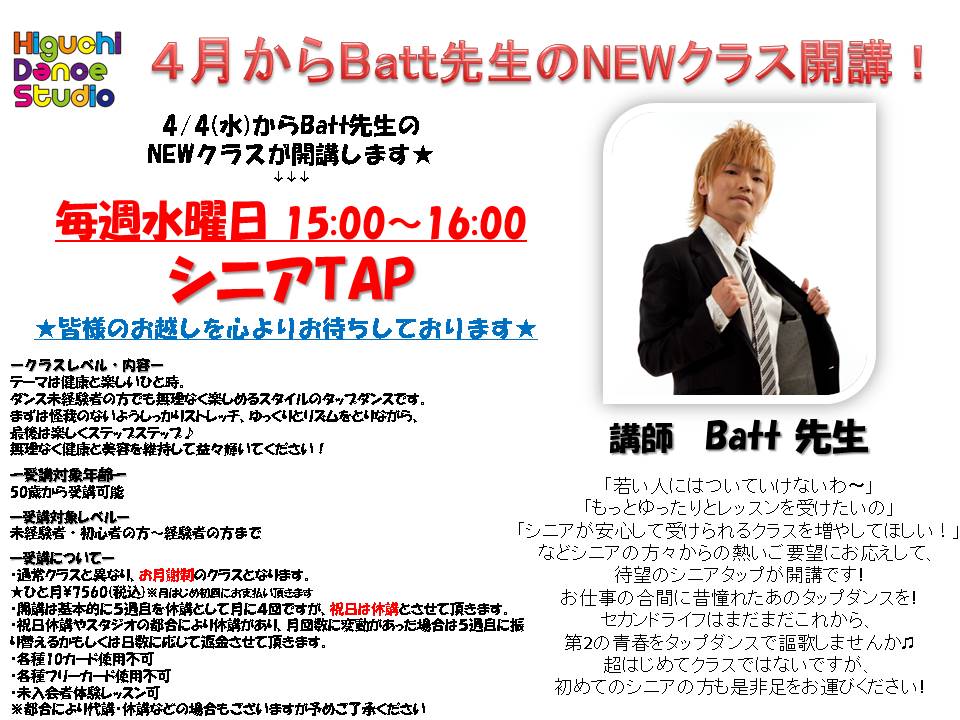 ※Batt先生(火)クラス、清水夏生先生(日)クラスのフリー適用に関して写真の中で表記ミスがございました、(タップフリー適用、ダンスフリー適用外となります。)写真は訂正してありますのでご確認ください。