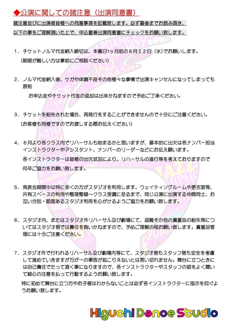 ナンバーの出演条件は、6月から9月本番までのレッスン・リハーサル参加が基本となりますので、あらかじめご了承の上お申し込み頂きますよう、宜しくお願い致します。